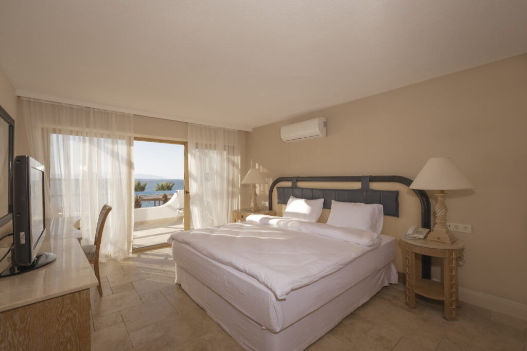 Benzersiz deniz manzarasıyla tatilinizi unutulmaz bir deneyime dönüştüren bu oda, şıklığı ve ferah yapısıyla konforu bir arada sunar. Alt kat odalar geniş terasa, üst kat odalar balkona sahiptir.