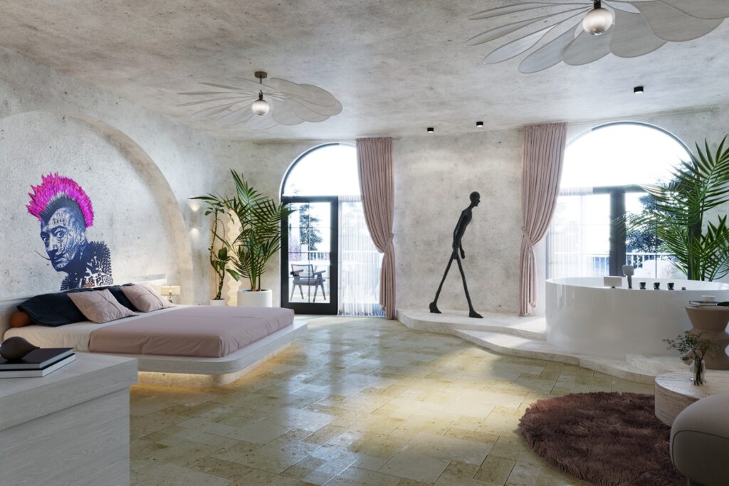Tasarım ve mimarinin zarif detaylarıyla adeta bir sanat galerisini andıran bu geniş odalar, jakuzi ve eşsiz deniz manzarasıyla ayrıcalıklı bir konaklama sunar. Teraslı odaların her biri özenle dizayn edilmiştir ve hem şıklığı hem konforu bir arada yaşatır.
