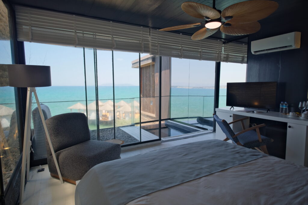 Ahşap mimarisiyle öne çıkan bu özel oda, verandasındaki özel havuzu, bahçesinde yer alan korunaklı küveti ve büyüleyici deniz manzarasıyla size, adımınızı attığınız anda bir guletin güvertesindeymişsiniz hissini yaşatır.