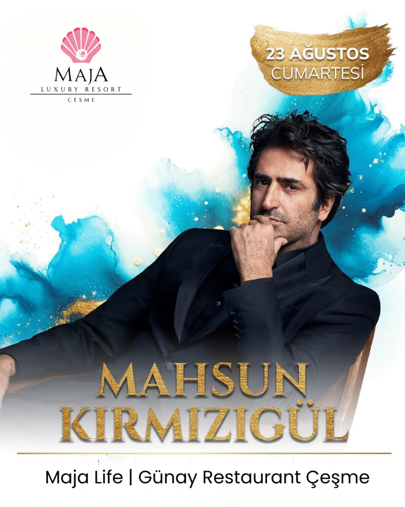 Türk müziğinin efsane sesi Mahsun Kırmızıgül, 23 Ağustos Cumartesi akşamı Maja Luxury Resort Hotel’de, Maja Life alanındaki Günay Restaurant sahnesinde sizlerle!